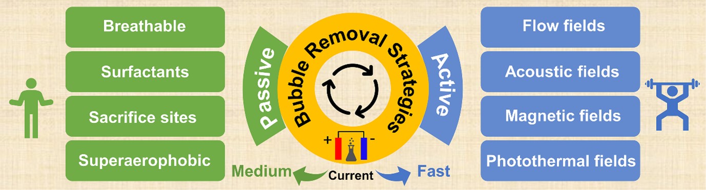 本文讨论了电化学系统中高效排出气泡策略的最新进展。首先详细分析了电化学系统中气泡的演变机制和由此产生的过电位机理和模型。接着,从被动和主动策略的角度介绍了高效排出气泡的最新进展;最后,总结了两种策略的优缺点以及对未来的展望,为高性能气体析出电化学系统的理论指导和设计准则提供一定思路。