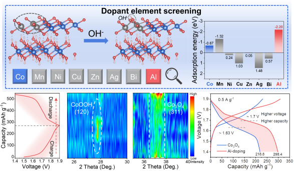 本文对碱性电解质中的深层反应机理提出了挑战,并证明了由于对=OH的吸附能低,其表面氧化还原赝电容器行为容易发生通过原子级结构工程巧妙地调整了钴基材料的内在电化学性能,为储能系统的发展开辟了新的机遇。