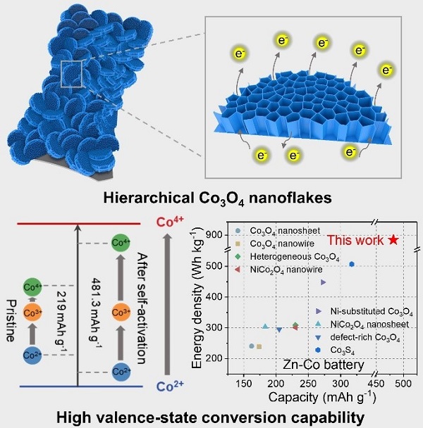 Self-Activated Formation of Hierarchical Co3O4 Nanoflakes with High Valence-State Conversion Capability for Ultrahigh-Capacity Zn–Co Batteries