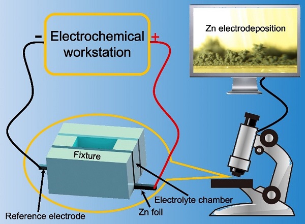 本工作通过改变黏度模拟碱性电解质凝胶过程,并利用显微镜原位观测技术观察锌酸盐离子沉积过程,结合沉积厚度数据分析,探索出电流以及黏度对沉积过程的影响。本工作的结论将指导未来锌基电池电解质的选择,其所采用的原位观测技术将为未来电池界面的机理研究提供新的思路及方法。