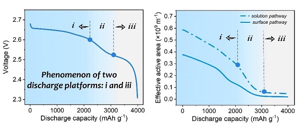 本工作构建了一种非水系锂氧气电池电极尺度的微观模型,建立了反应途径与电极微观结构演化的相互依赖关系,通过Li2O2形态修正了物质传输关系。基于模型解释了部分实验中出现两段放电电压平台的现象。该工作为揭示锂氧气电池中的耦合现象提供参考。