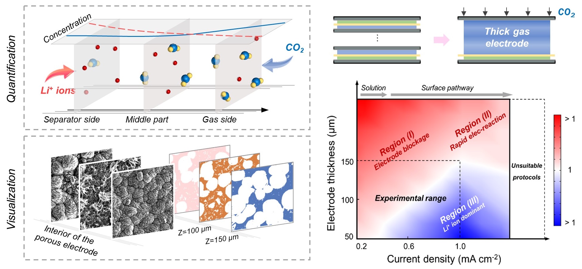 该工作通过时空分辨技术建立了厚气体电极微观行为与宏观电化学性能之间的联系,填补了厚气体电极容量衰退机制方面的空白。结合实验和数值模拟,提供了不同工作协议下的失效机制热点图,为厚气体电极的设计提供了指导。