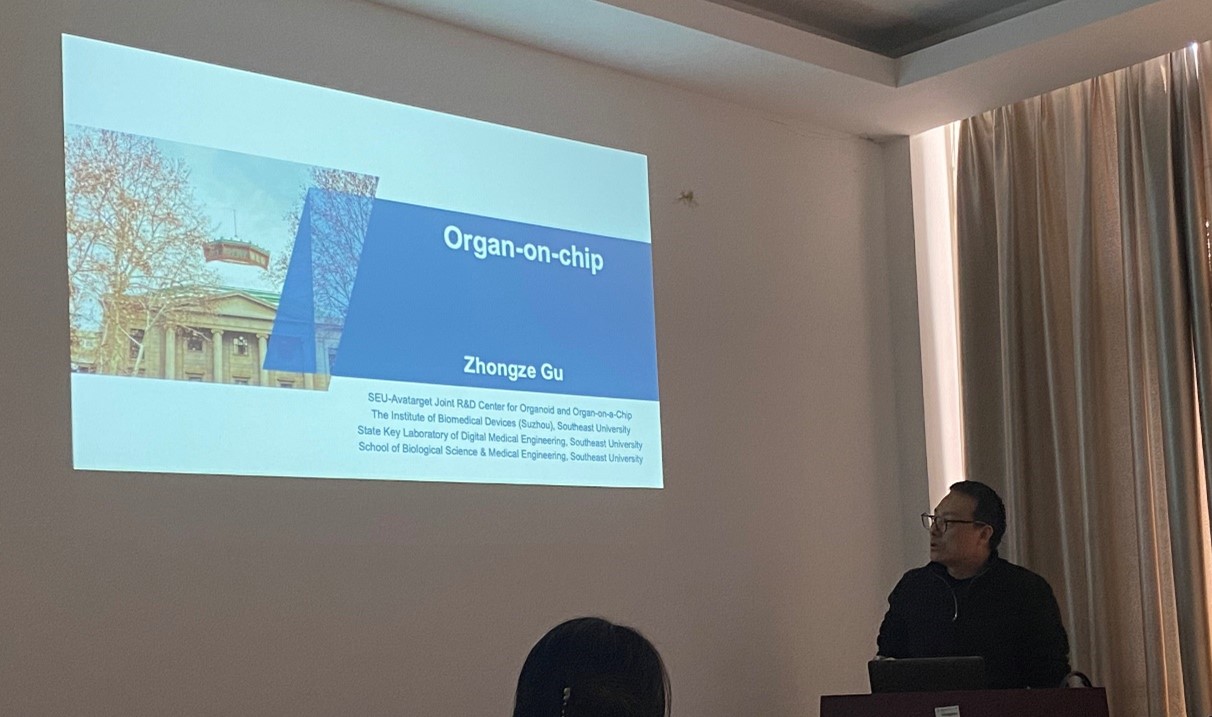 在此次报告会上,顾忠泽教授以其在东南大学的研究为核心,首先提出了医疗器械未来发展的三大趋势,包括医疗器械逐渐为健康人所用,人工智能(AI)会彻底改变医疗器械的格局以及未来器官芯片会取代动物成为实验主体。然后,顾教授分享了其研究团队成功构建的包括心脏类器官、皮肤类器官、肿瘤类器官在内的多种类器官及其应用。不仅如此,顾教授还给现场师生介绍了其研发的首例用于空间站在轨实施的器官芯片项目,该项目由中国航天员科研训练中心和顾忠泽团队协同攻关,迭代制作出可对抗失重、强振、气压变化,并保持血管长期活力的人工血管芯片。