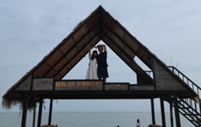 湖旁建有类似古代凉亭和欧式花棚的建筑,众师生便起哄,让文彬师兄与其未婚妻刘莉莉学姐在此处预演拍摄婚纱照。小俩口起初觉得害羞,但见良辰美景不免心动不已,于是便有了下面绝美的画面,希望此二人往后的生活甜甜美美,平安喜乐。