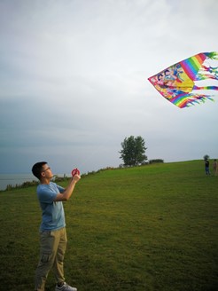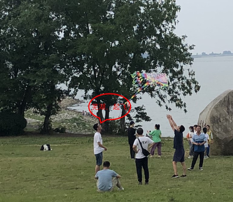 吃完午饭,正是热的时候,遂于饭肆之中休憩,等到室外稍微凉爽些的时候,再去观巢湖。约摸未时众人到达巢湖,此时湖面略起波浪,不会过于汹涌而让人感到惊恐,亦不会过于平静犹如一滩死水让人感到压抑,一切都是那么恰到好处,让人感到心旷神怡。湖边已经有不少游者,众人一看到湖面便迫不及待地奔向湖边,或散步,或投石于湖中,或打水花,或放风筝,所有人都用力享受着这难得的与大自然亲近的机会。