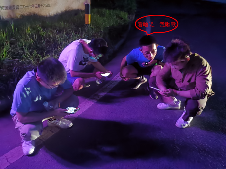 不多时就到了森林公园的出口,五人组便在此处等龙老师驱车来接,并留下了宝贵的画面,并未因饥饿显得很焦急,氤氲的灯光反而使氛围变得很烂漫。这种氛围并未持续太久,五人组很快就搭上了龙老师的便车,与大部队汇合。