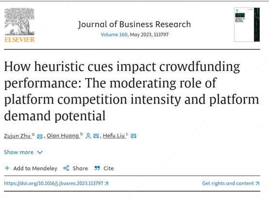 Title: How heuristic cues impact crowdfunding performance: The moderating role of platform competition intensity and platform demand potential;