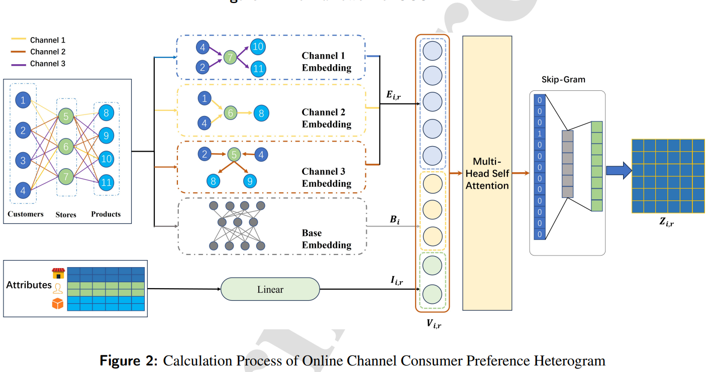 In the dynamic and turbulent business environment, sales forecasting for multi-channel retailers has become increasingly intricate, particularly with the shift from traditional brick-and-mortar channels to a diverse range of distribution channels. This transition not only complicates forecasting challenges but also highlights the crucial role of utilizing online traceable consumer purchase data to discern consumer preferences for stores and products and enhance sales forecasting accuracy. This paper proposes a two-stage deep learning approach based on Online Channel Consumer Preference Heterogram and Multi-Head Attention mechanism (OCCPH-MHA). In the first stage, the model identifies potential consumer group preferences based on individual purchasing behavior. In the second stage, it seamlessly integrates this identified feature with time-series demand data using a global-local attention mechanism, thereby facilitating multi-step forecasting. This study’s robust validation involves testing the model on the dataset from a multi-channel retail restaurant company, showcasing its prowess in significantly improving the precision of sales forecasting. This not only substantiates the model’s effectiveness but also underscores the importance of consumer group preferences, as it contributes to a comprehensive framework. This framework, focused on tracking the preferences of potential consumer groups, emerges as a valuable tool that collectively refines and optimizes the sales forecasting process for both industry practitioners and researchers.