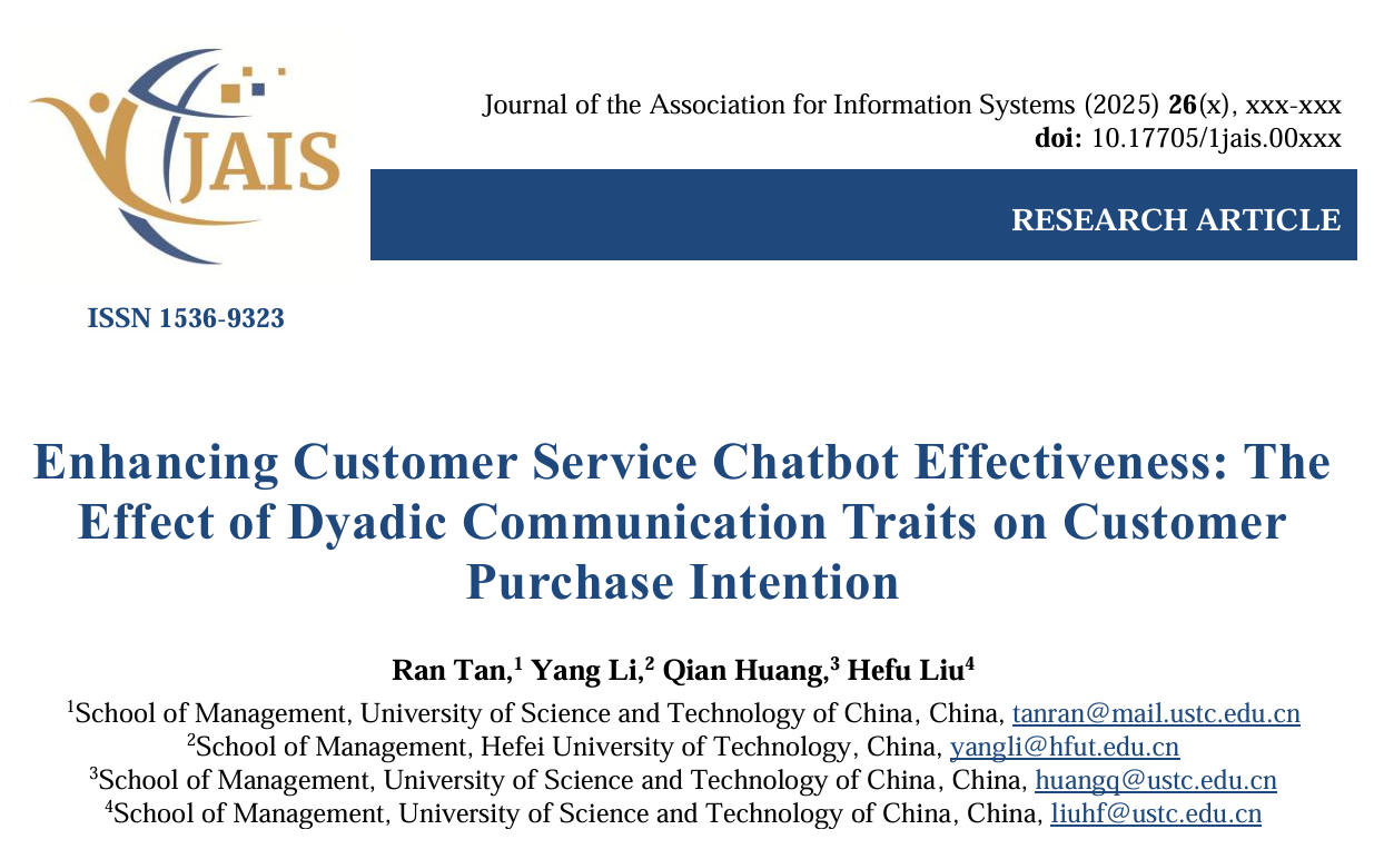 成果速递:IOM实验室解释智能客服二元沟通特性对客户购买意愿影响机制