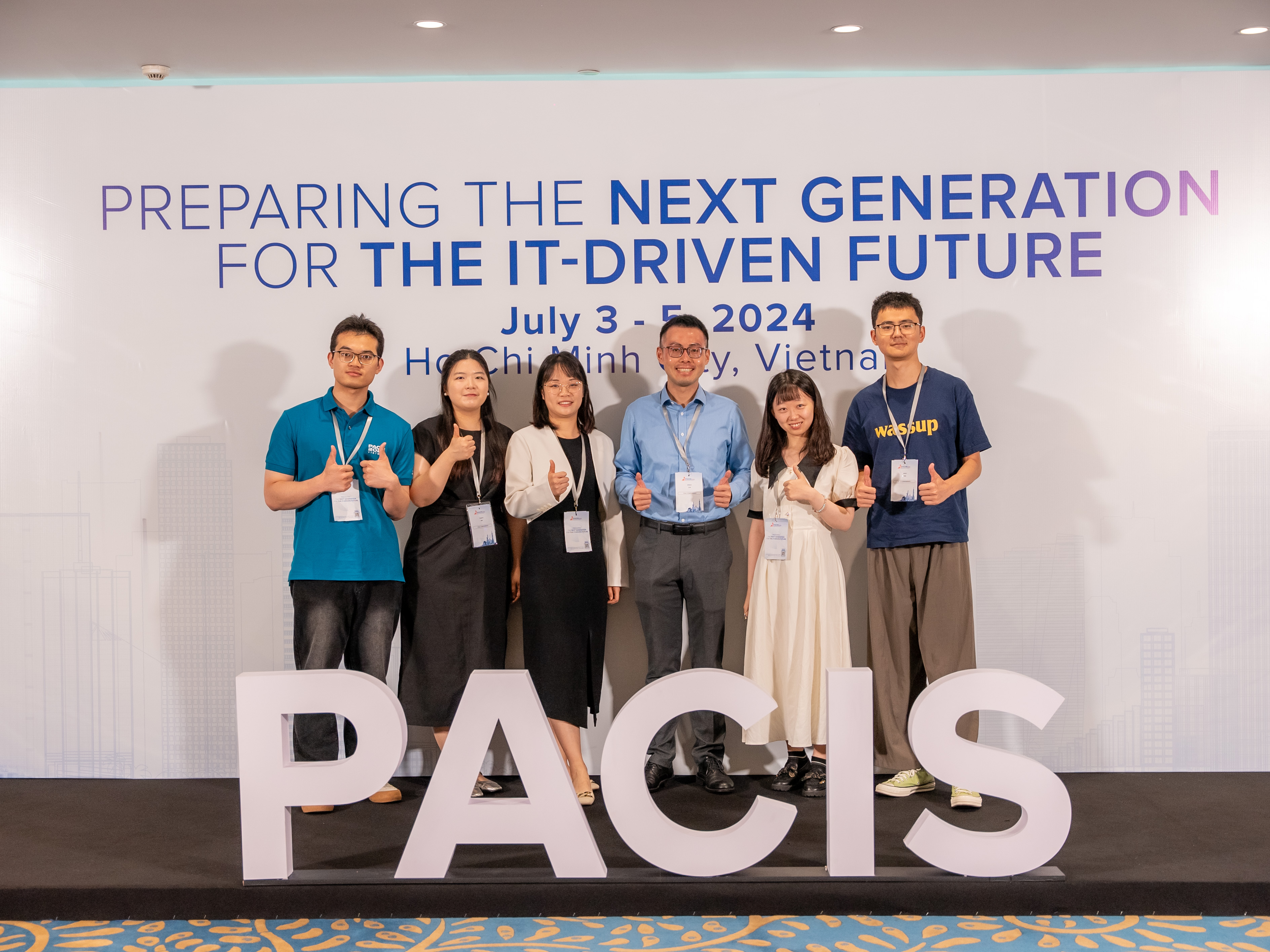 2024年7月1日至5日,2024年亚太信息系统会议(Pacific Aisa Conference on Information System,PACIS 2024)在越南胡志明市成功举行。PACIS是亚太地区信息系统协会主办的主要会议之⼀,本次会议由⾹港⼤学驻越南代表处(HKU VN)主办。PACIS 2024 的主题是“让下⼀代为 IT 驱动的未来做好准备”。本次会议共有500多名信息系统领域的研究⼈员参加。