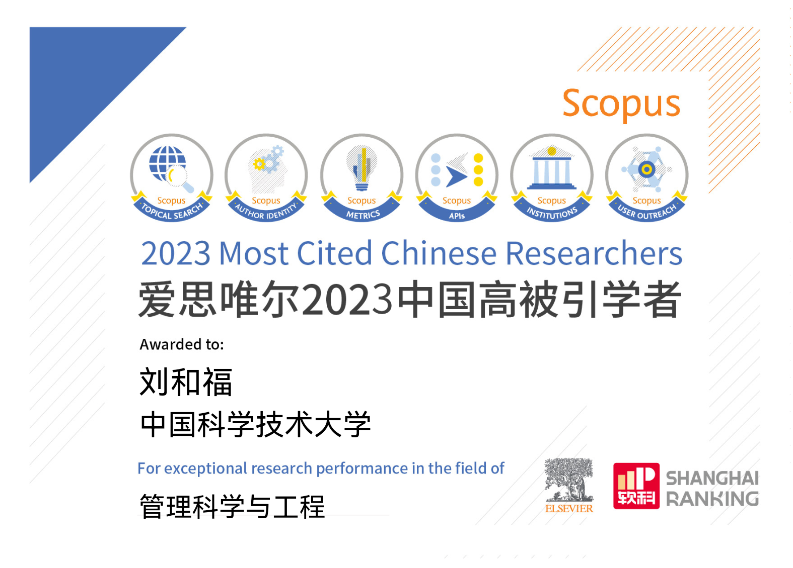 刘和福老师、黄茜老师获2023爱思唯尔高被引学者